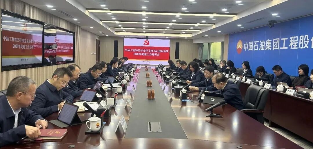 中油工程召开2025年度党支部书记抓党建工作述职会暨2026年党建工作部署会,落实集团公司党组部署,总结2025年党建工作,安排2026年重点任务,进一步统一思想、凝聚共识、压实责任,以高质量党建引领公司“十五五”开好局、起好步,以高质量发展优异成绩迎接建党105周年。集团公司副总工程师,中油工程党委书记、董事长白雪峰出席会议并讲话。