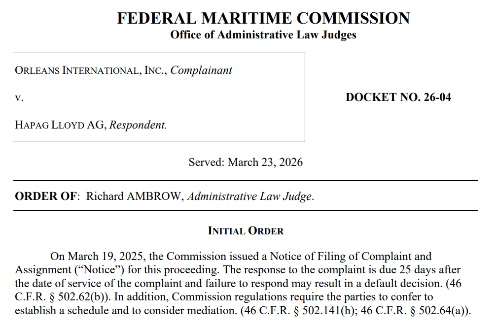 美国联邦海事委员会(FMC)官网显示,肉类进口商Orleans International对航运巨头赫伯罗特提起投诉,指控该公司在新冠疫情期间港口严重拥堵时,征收了不合理的滞留费和滞期费(D&D费用)。
