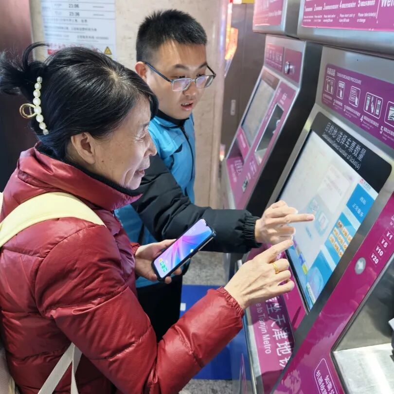 天津院团委组织青年志愿者走进天津西站开展志愿服务。志愿者为往来旅客提供路线引导、票务协助、行李帮扶等贴心服务,重点帮助老年旅客操作自助售票设备、解答换乘疑问,累计服务旅客数百人次。