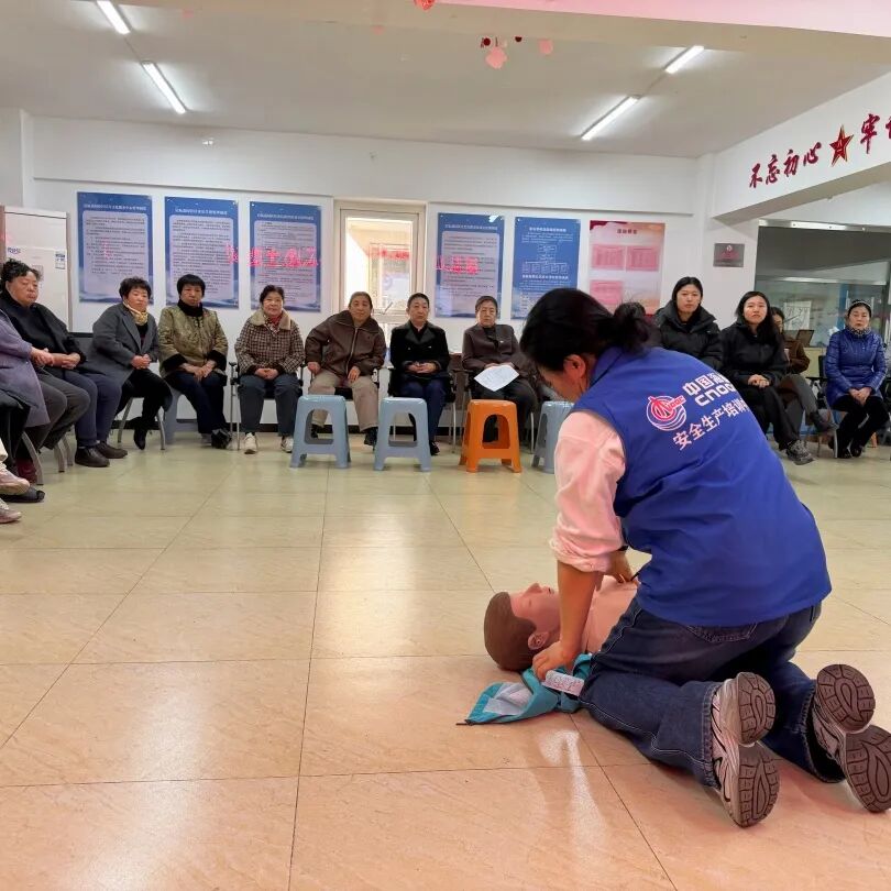 安全环保公司青年志愿者走进社区,为老年居民开展暖心血压检测服务,让老人在家门口就能完成健康筛查、及时掌握身体状况。另外,志愿者还现场示范讲解心肺复苏急救技能,有效提升了老年群体应对突发健康问题的自救互救能力。