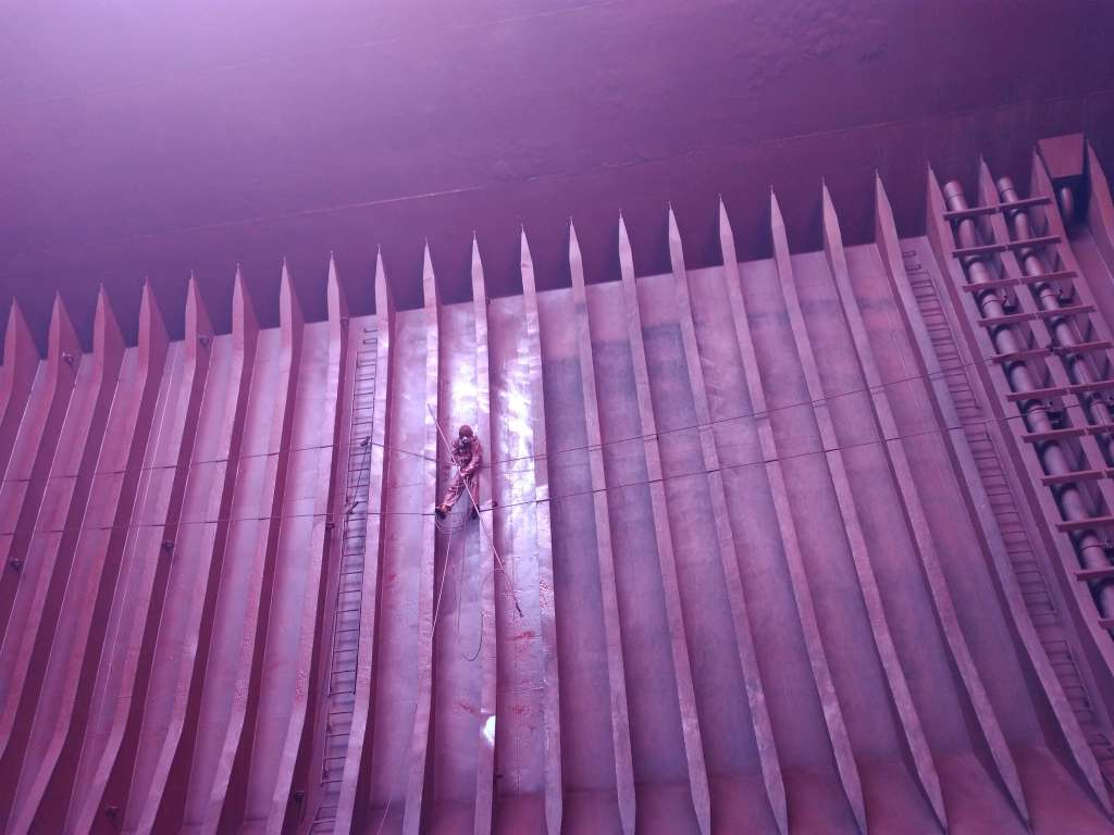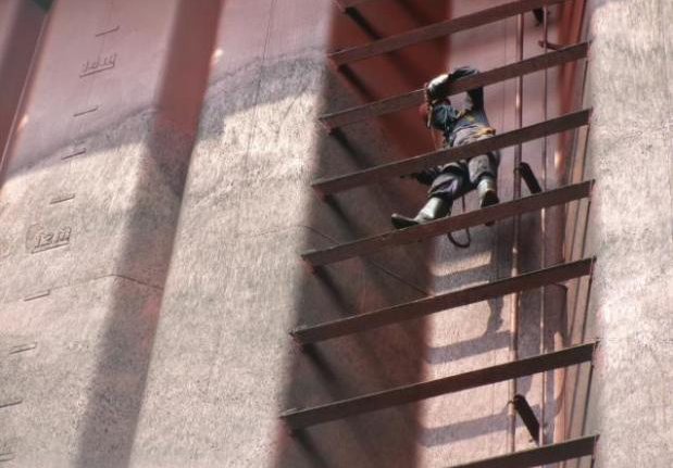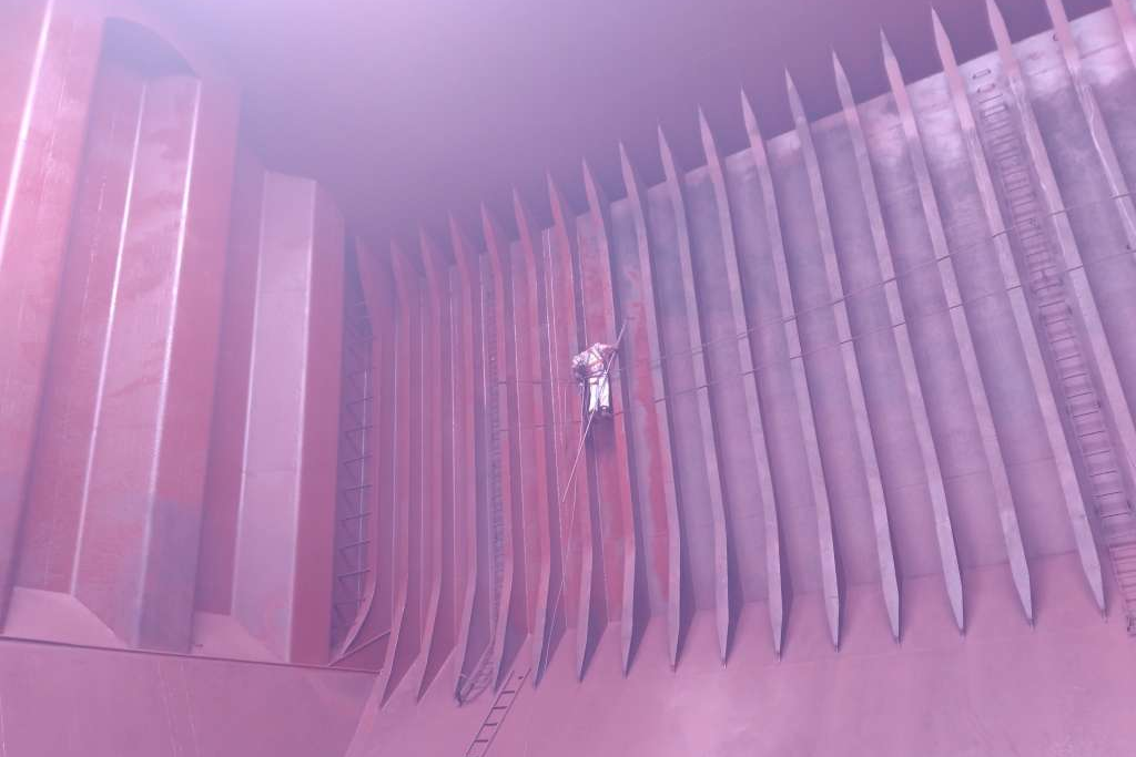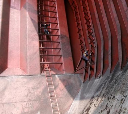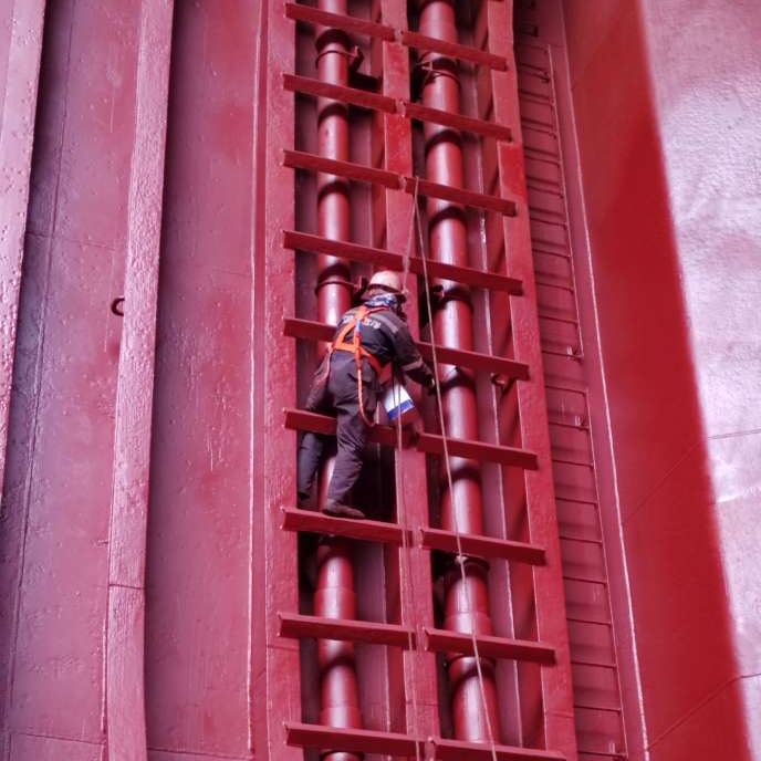 喷漆环节直接关系粮食运输安全,船员们不惧高空风险,攀爬在舱壁与肋骨间灵活操作喷枪,让漆层均匀覆盖舱面。即便油漆气味刺鼻、长时间作业身心俱疲,大家仍坚守岗位,只为确保一次通关。作业全程,安全底线绝不逾越,大副每日工前会强调安全要点,细致检查防护用品,开展风险评估;岸基应急小组全程待命,为现场作业提供坚实后盾。