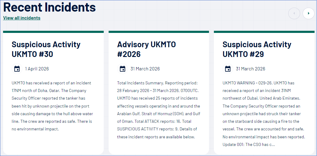 这是最近霍尔木兹海峡附近第3艘遇袭的船舶。截至目前,UKMTO发布安全通告26起,其中16起被归类为袭击事件,另有10起为可疑活动报告。
