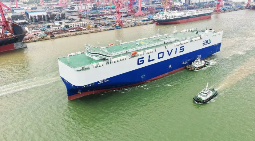3月31日,广船国际为韩国HMM公司建造的10800车LNG双燃料汽车运输船(PCTC)1号船出海试航,这是目前全球在建的首艘万车级双燃料汽车运输船。