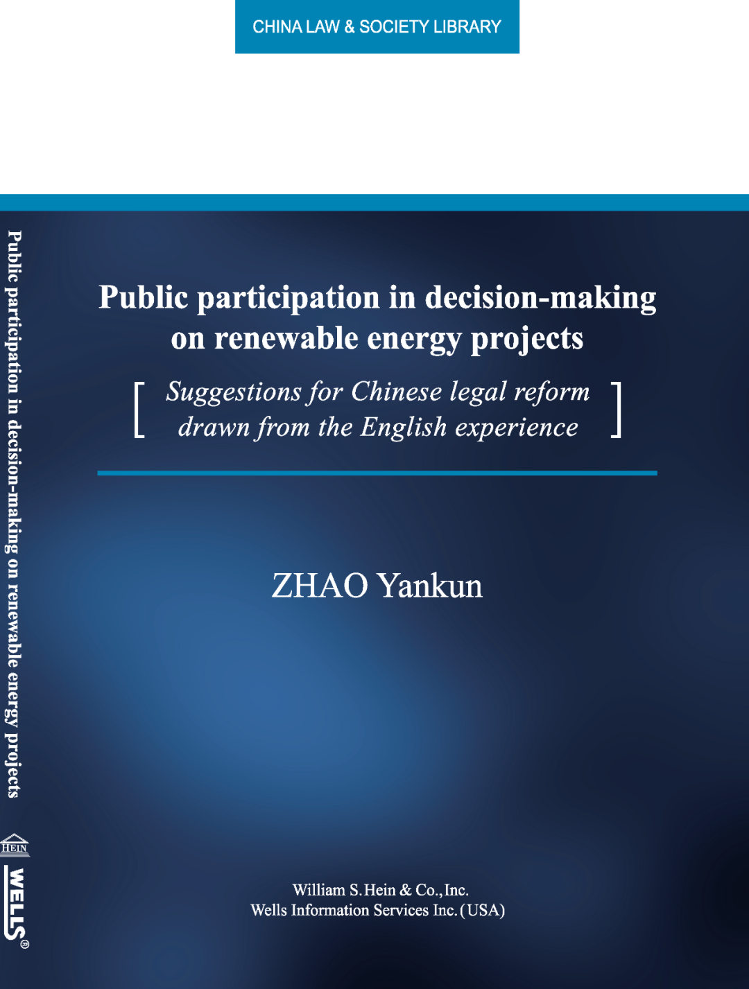华东政法大学特聘副研究员赵艳坤老师基于其新南威尔士大学商学院博士论文的学术专著Public participation in decision-making on renewable energy projects: Suggestions for Chinese legal reform drawn from the English experience。