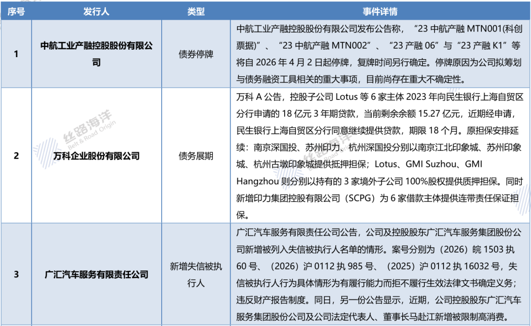 债市观澜 ‖ 中航产融债券停牌;万科银行借款再展期等(4月2日)