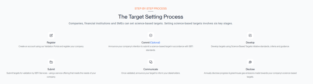 作出承诺:在SBTi官网注册并签署、提交承诺函,表明设定目标的雄心。