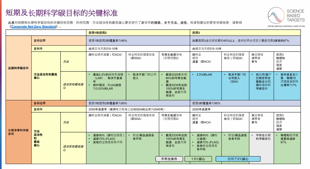 科学碳目标一般要包括目标的期限,以及是否覆盖范围一、二及三产生的排放,可分为短期目标、长期目标和净零目标。