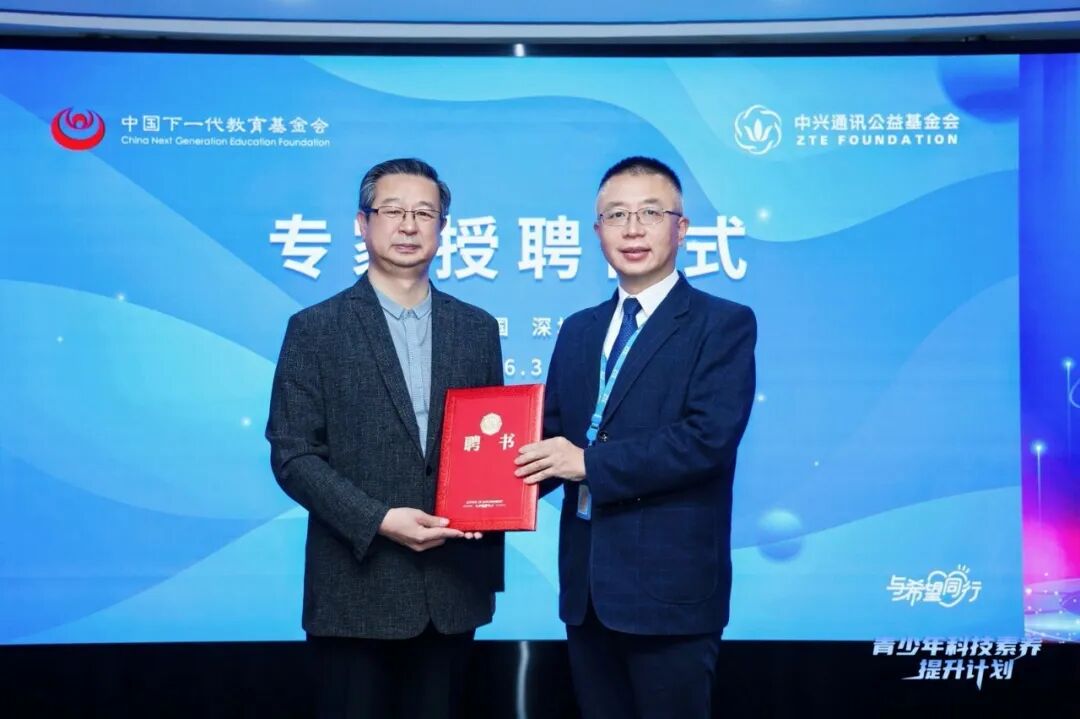 活动当天,中国下一代教育基金会与中兴通讯公益基金会现场签署合作协议,并为中兴通讯学院专家闫林颁发聘书。未来,中兴通讯将组织更多科技专家参与青少年科技教育,推动企业科技资源转化为普惠教育资源。