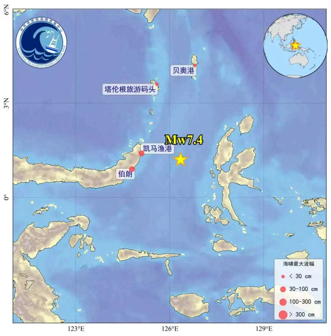 印尼马鲁古海北部海域7.4级地震海啸