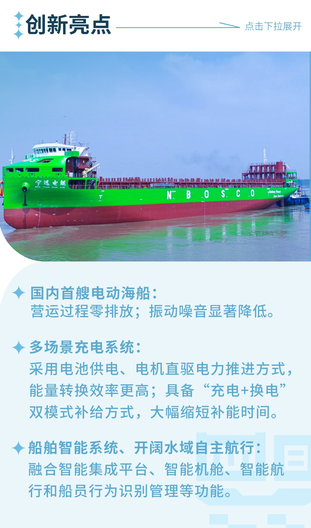 “宁远电鲲”“宁远电鹏”——2艘全球最大、全国首批740TEU纯电动敞口集装箱海船。