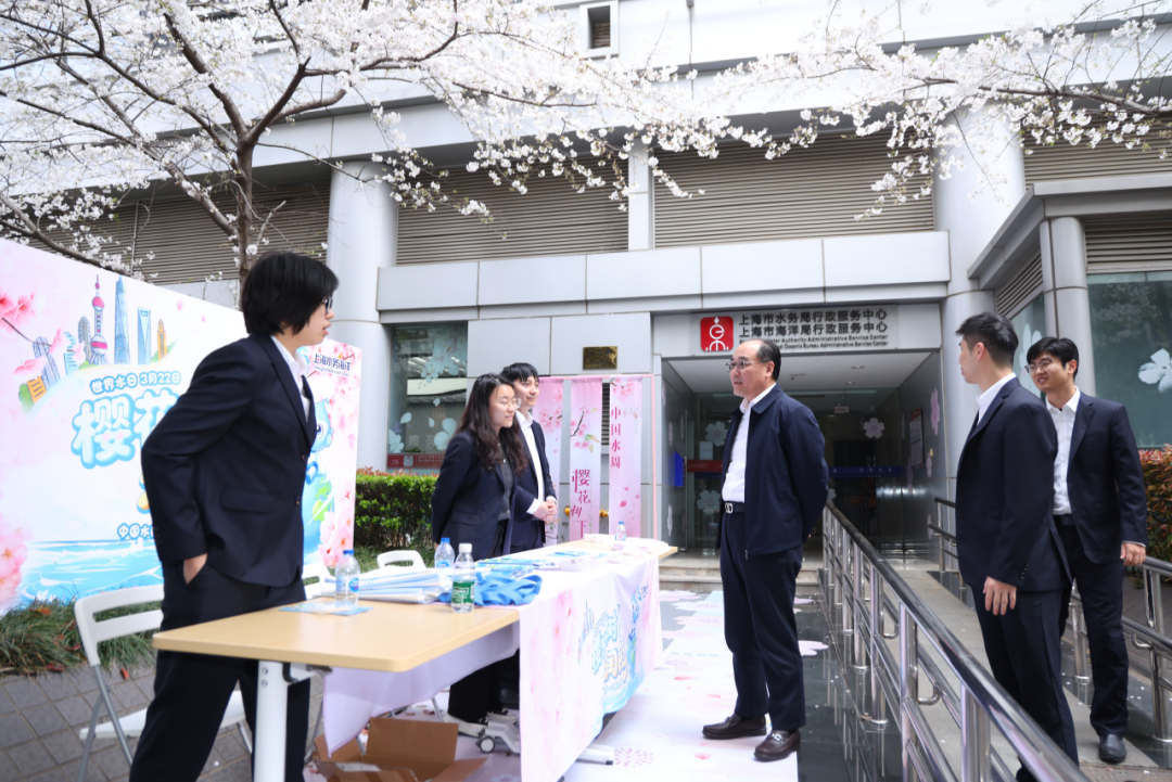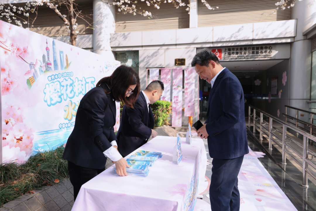 春和景明,樱粉缀城。4月2日,恰逢樱花盛放时节,一场以“樱花树下·水润民生”为主题的水务海洋政务服务宣传体验活动在上海市水务局政务服务窗口启幕。活动以樱花为媒、以服务为桥,延续中国水周宣传初心,将水务海洋政策宣传、政务服务体验与互动打卡深度融合,现场设置高频事项解读、一网通办体验、自助终端实操、趣味互动问答等环节,吸引了众多周边企业、市民驻足参与,让大家在赏樱之余,轻松读懂水务政策、便捷体验政务服务、真切感受水务温度。
