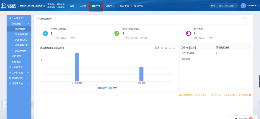 数据中心当前已上线流程、人事、行政、后勤四类数据报表,后续将持续迭代优化。目前,计划经营域报表已完成接入,后续将陆续接入其余数智化域的核心报表。该中心具备灵活的数据服务能力,可根据各专业部门需求,对平台全域数据进行定制化挖掘与可视化呈现,让数据真正“说话”,为管理决策提供有力支撑。