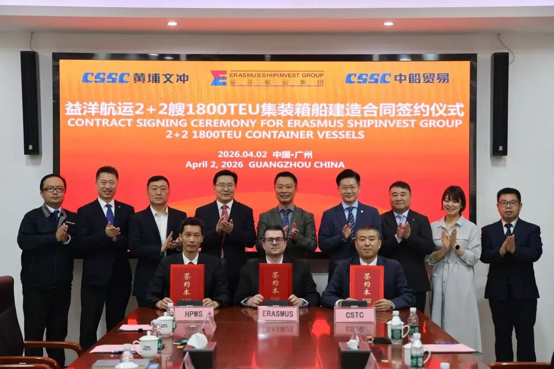 信德海事网消息,4月2日,益洋航运集团(Erasmus Shipinvest Group)与黄埔文冲船舶有限公司、中船贸易共同签署合作协议,正式启动2+2艘1800TEU支线集装箱船建造项目。