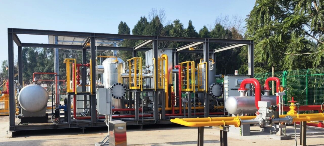 工程建设公司四川科宏公司创新研发的“超音速旋流分离管+J-T阀+冰机橇”复合制冷脱水脱烃橇装装置,充分利用井口与城市管网间的压力差,在开采初期实现“零碳”制冷,在后期启动冰机辅助,“压力能+机械冷能”的混合驱动模式,实现“低碳”制冷,为远离管网的边际气井提供了绿色、高效的供气方案。