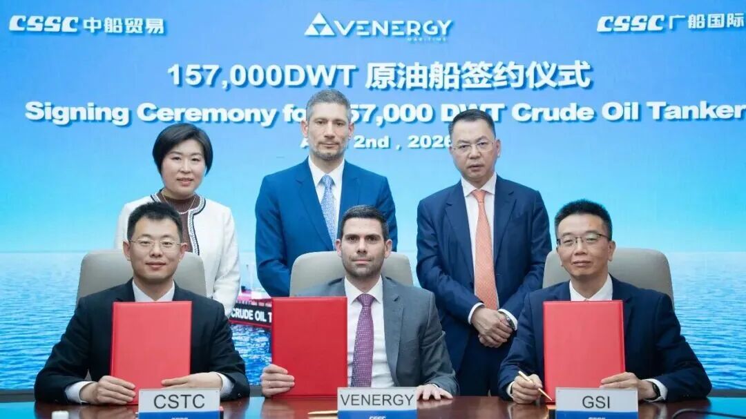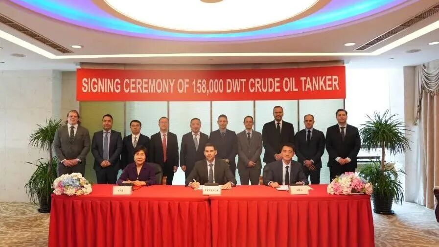 近日,中船广船国际联合中船贸易与希腊Venergy Maritime Limited航运公司签署2艘15.7万吨原油船(Suezmax)建造合同。