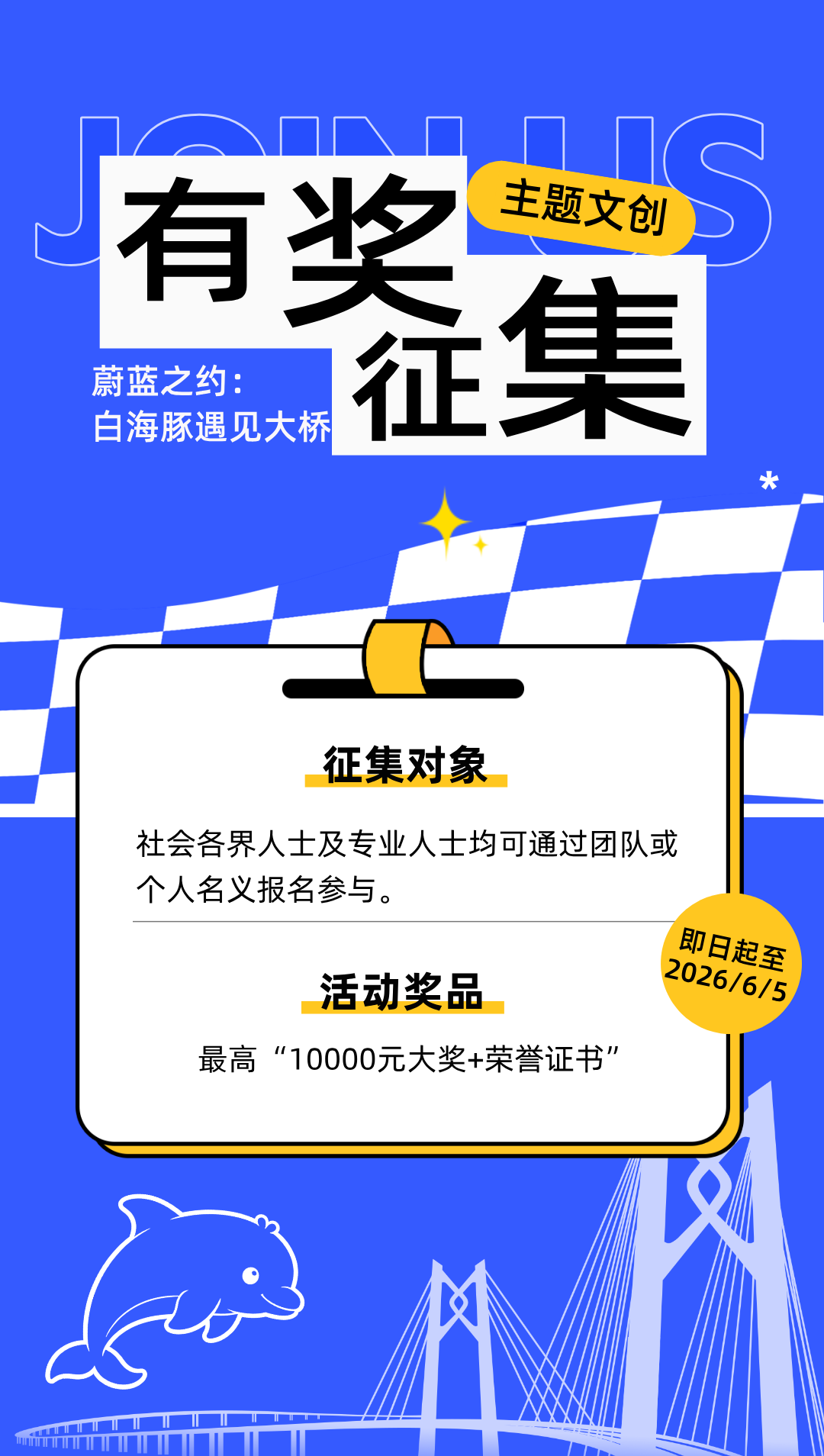 以港珠澳大桥建设故事、中华白海豚保护实践为创作素材,创作单集时长不超过10分钟的微短剧作品(含原创剧本),作品需情节完整、主题鲜明、情感真挚,符合微短剧传播特点。