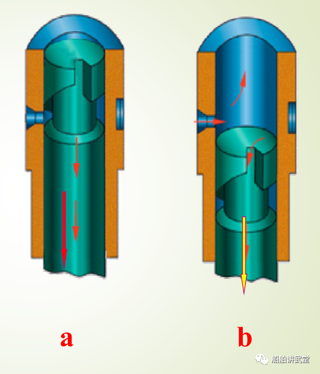 调长整个柱塞机构,相当于柱塞头部会提前封闭上图中的油口,开始建立压力喷油;调短整个柱塞机构,相当于柱塞头部会滞后封闭上图中的油口,晚些建立压力喷油。