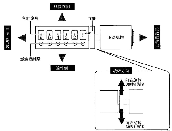 YANMAR 6EY18系列为6缸发动机,点火顺序为1-4-2-6-3-5-1,需按顺序检查每个气缸的供油定时: