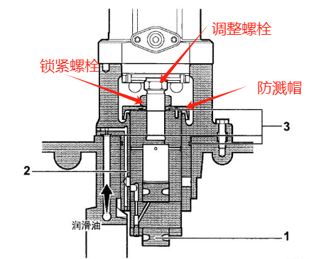 (2)使用专用工具撬动防溅帽,确认还有一定升程(目的是防止往提前角增大方向过度调整,使得柱塞偶件没有顶升空间被顶坏);