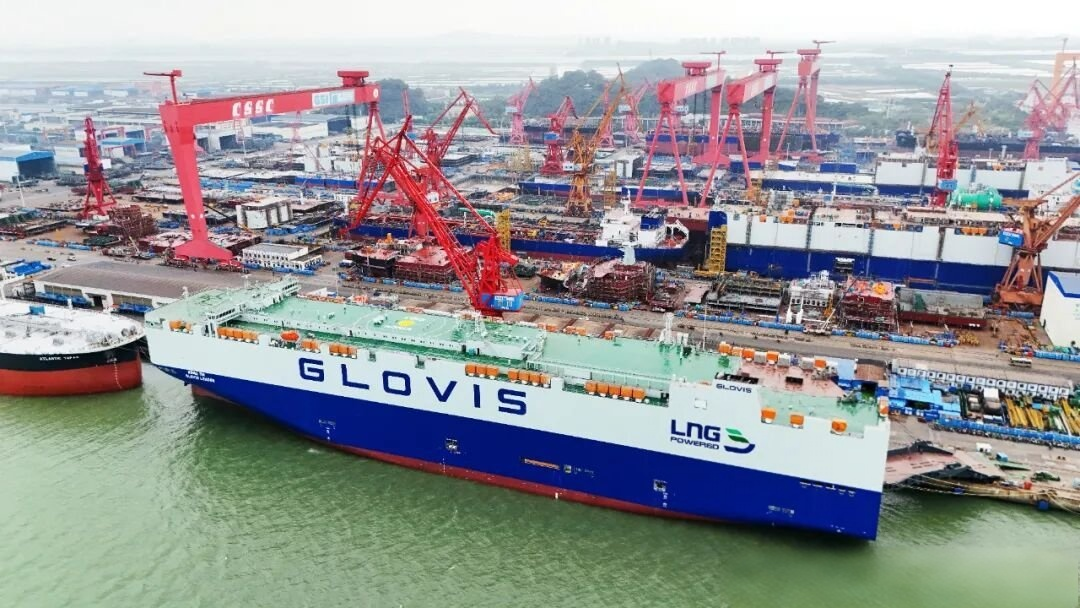 3月31日,广州南沙港锚地彩旗飘扬、汽笛长鸣,由中国船舶集团旗下广船国际有限公司为韩国HMM(现代商船)旗下Glovis公司量身打造的全球首艘10800车LNG双燃料汽车运输船(PCTC)1号船,缓缓驶离广船国际南沙造船基地码头,正式开启为期7-10天的海上试航征程。这艘集超大运力、绿色低碳、智能建造、安全高效于一体的“海上巨无霸”,不仅刷新了全球汽车运输船的运力纪录,更标志着中国在高端滚装船建造领域实现全产业链突破,跻身世界顶尖行列,为全球新能源汽车规模化海运提供了可复制、可推广的中国方案,也为国际航运业绿色低碳转型注入强劲动力。