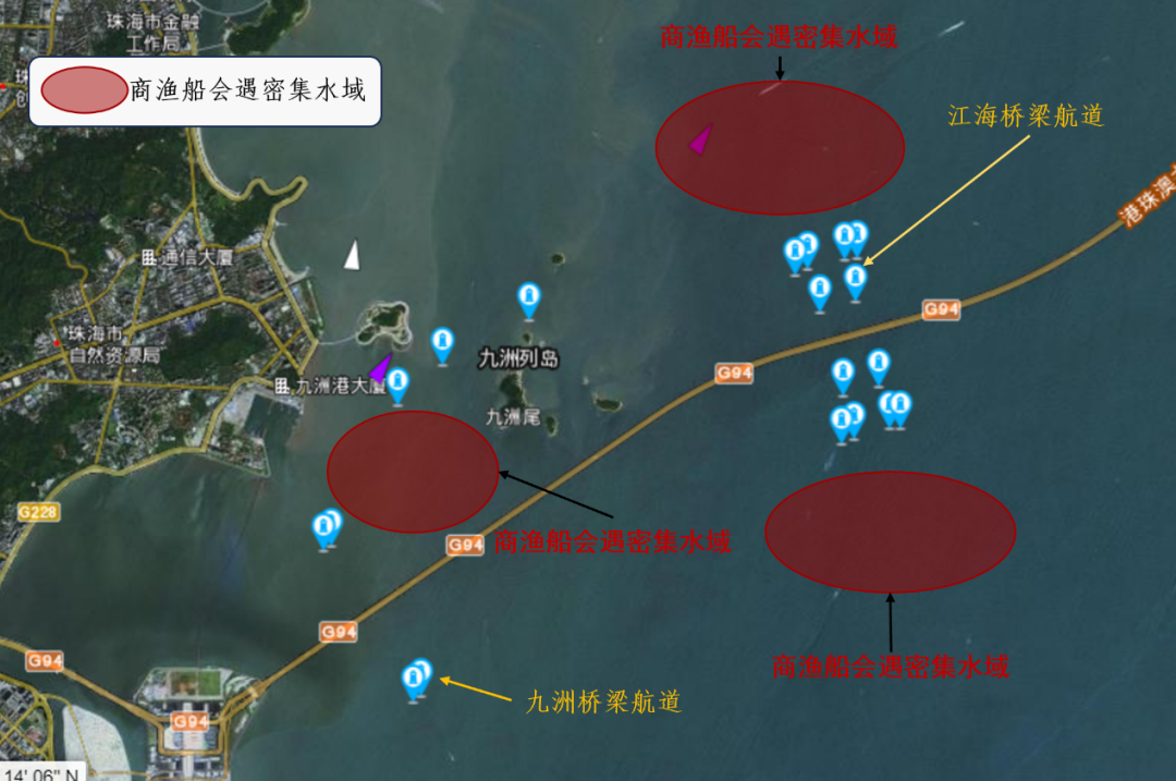 港珠澳大桥水域商渔船会遇密集水域示意图