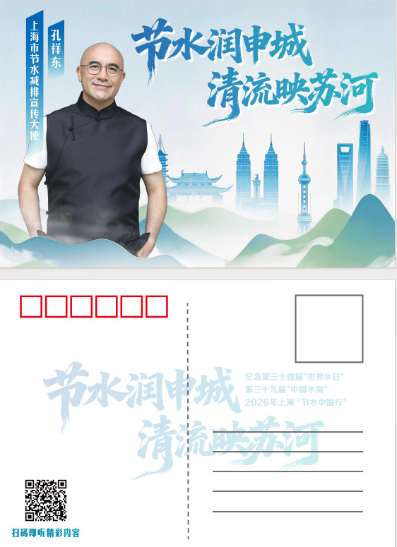 在第三十四届“世界水日”、第三十九届“中国水周”期间,上海市创新性推出节水主题明信片,特邀上海节水减排宣传大使、著名钢琴家孔祥东先生倾情助力,以艺术为桥、以创意为媒,让节水理念浸润城市肌理、走进千家万户。