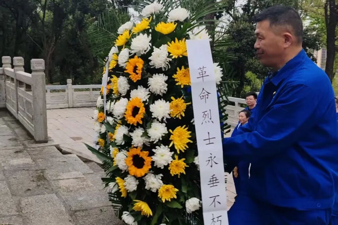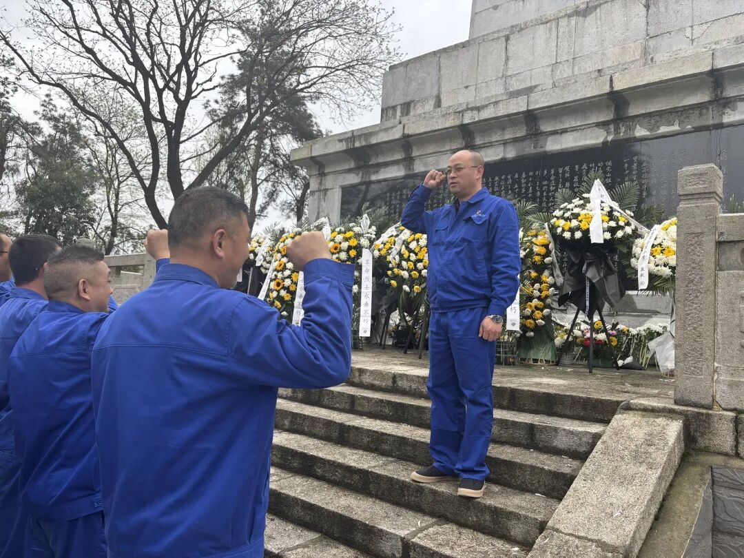 活动现场庄严肃穆。全体党员身着工装、佩戴党徽,整齐列队于烈士纪念碑前,默哀寄思。各党支部依次敬献花篮,缎带轻扬,承载着对英烈的崇敬与追思。随后,全体党员三鞠躬、敬礼,用最庄重的仪式致敬先烈的舍生取义与无私奉献。