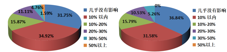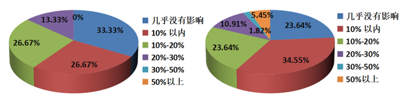 图11 船舶运输(左)与干散货(右)运输企业对受中东地缘冲突影响的业务规模占比的看法