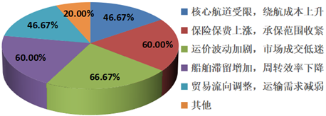 6 超七成的航运企业认为当前运输业务面临的核心风险是保险保费上涨及承保范围收紧