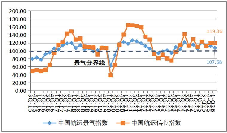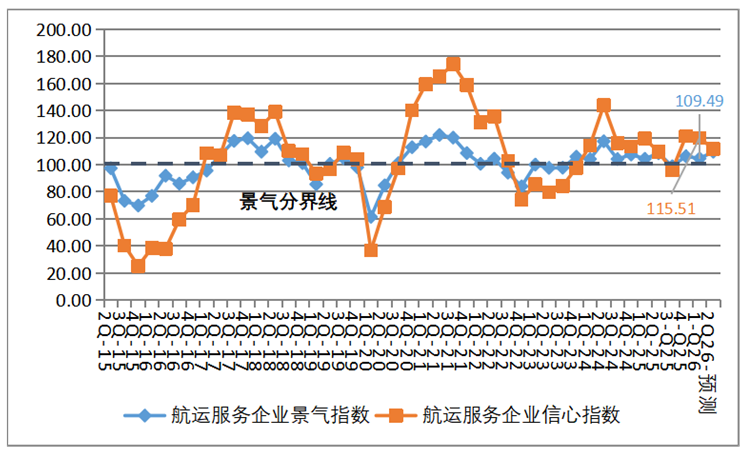 图6 中国航运服务企业景气和信心指数走势图