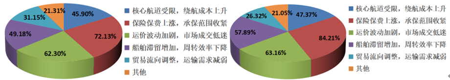 图13 船舶运输(左)与干散货(右)运输企业对当前运输业务面临的核心风险的看法