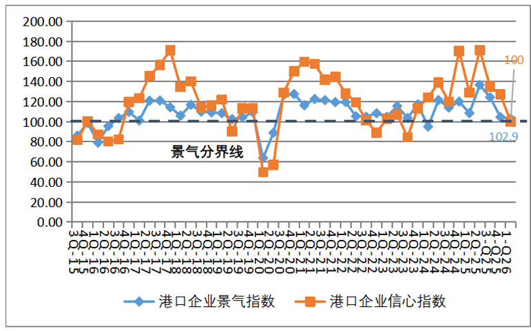 图5 港口企业景气指数与信心指数走势图