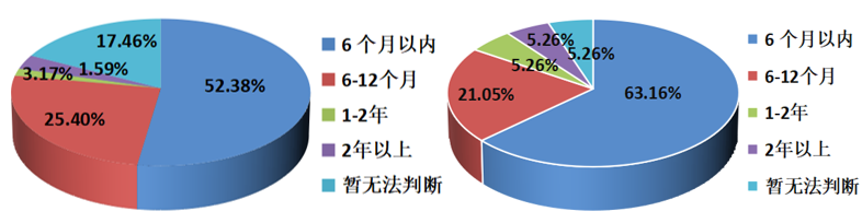 图18 集装箱运输(左)与航运服务(右)企业对地缘冲突对航运市场影响的持续时间的看法