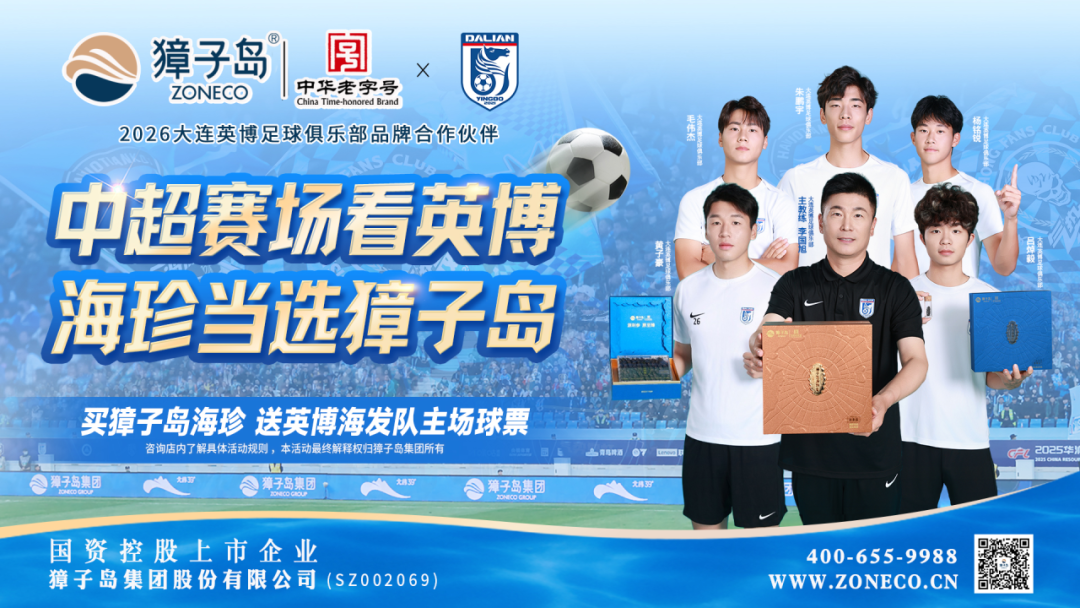 中超赛场看英博,海珍当选獐子岛。獐子岛集团携手大连英博海发队,与万千球迷并肩相伴,以热爱为纽带,共赴梦想征程。