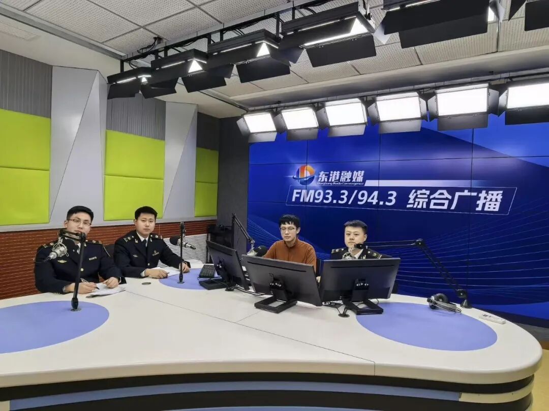 执法人员前往东港市融媒体中心开展商渔共治专题直播宣传活动。丹东海事局 供图