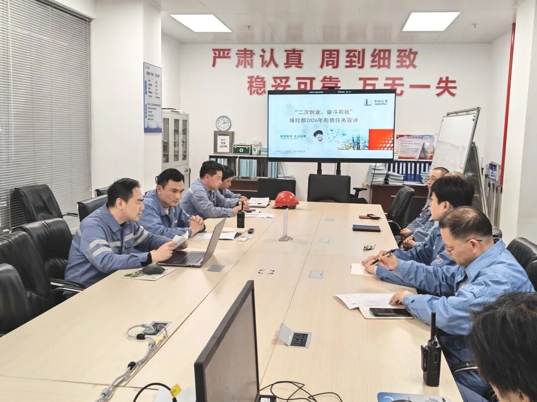 烯烃部紧扣“二次创业、奋斗有我”主题,系统推进形势任务教育。一是强化顶层部署,领导班子带头宣讲,结合集团公司、公司及烯烃部2026年工作会议精神,讲清当前形势挑战、年度目标任务及攻坚措施,切实增强员工主人翁意识;同时严格落实公司形势任务教育方案要求,承接分解四个季度主题活动,制定烯烃部重点工作运行表,明确推进路径。