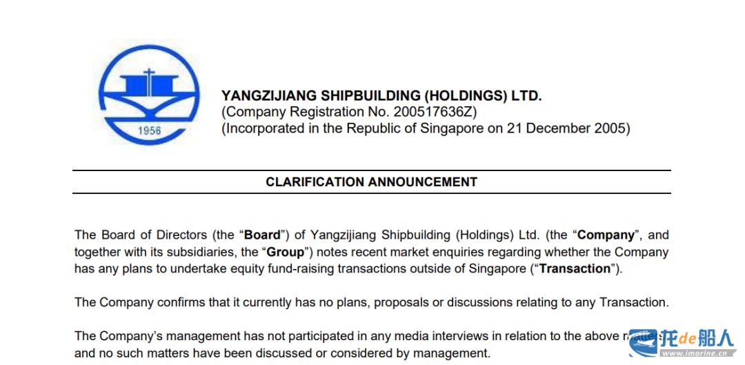 扬子江船业发布澄清公告