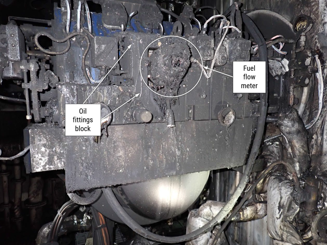 事发时,该燃油接口处的燃油压力为3巴,被挤压的O型密封圈长期承受高压燃油作用,密封性能持续劣化,最终发生破裂,导致加压燃油从破损处喷出并快速雾化,为火灾发生提供了易燃介质。
