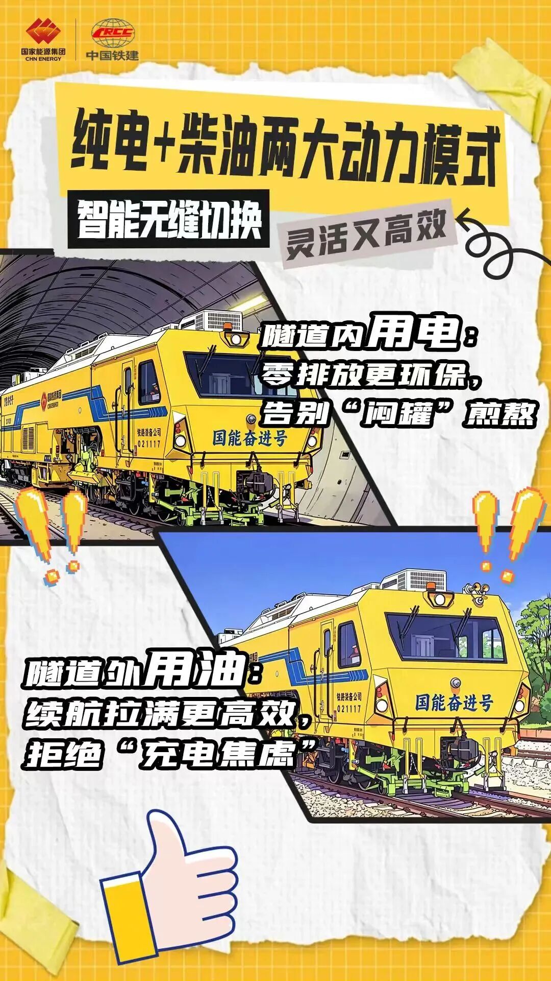 隧道外:柴油动力模式,续航拉满更高效!长距离转场、露天区间作业时,切换到柴油动力,动力充足、续航稳定,完全满足全场景作业需求,不用有“充电焦虑”。