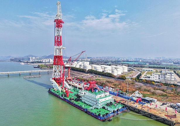 近日,我国自主建造的打桩船“铁建大桥桩1”号在江苏南通正式交付。该船总长130.5米、宽40.8米,桩架高156米,可打700吨级桩基,最大作业水深70米,是目前世界桩架最高、吊桩能力最大、作业水深最深的打桩船。该船首次在大型打桩船上实现应用“DP动力定位﹢锚泊定位”融合技术,可在复杂海况下保持稳定,大幅提升施工精度与效率。该船即将远赴巴西,参与建设拉美最大跨海斜拉桥——萨尔瓦多跨海大桥,后续还将服务于其他国内外重大海洋工程建设,为我国未来开展深远海工程、跨海大桥及海上风电建设提供有力支撑。