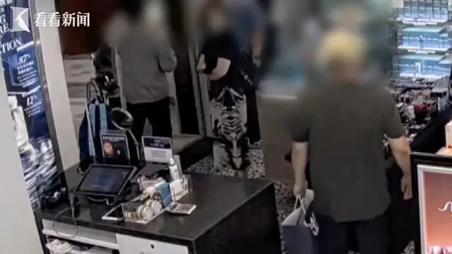 警方调查发现,邓某会向免税店工作人员索要购物袋,转头离开后再从另一扇门回到柜台前,假装挑选起商品。