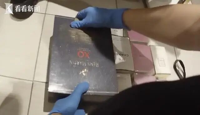 八瓶香水,一支化妆品和一瓶XO洋酒。