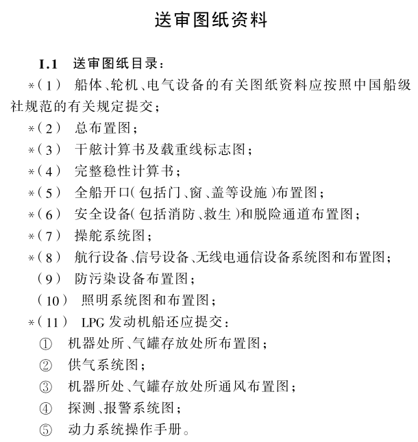 :现有船舶的初次检验(现称为建造检验)应将附录Ⅰ中带“*”项目的图纸资料一式三份及船舶建造质量书、主要船用产品证书等送交船舶检验机构审核...