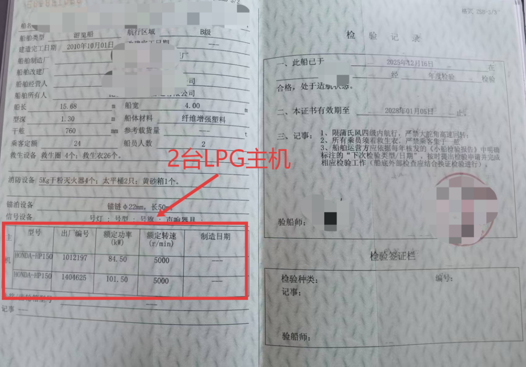 船尾2台LPG挂桨机。黄浦海事局 周凯 摄