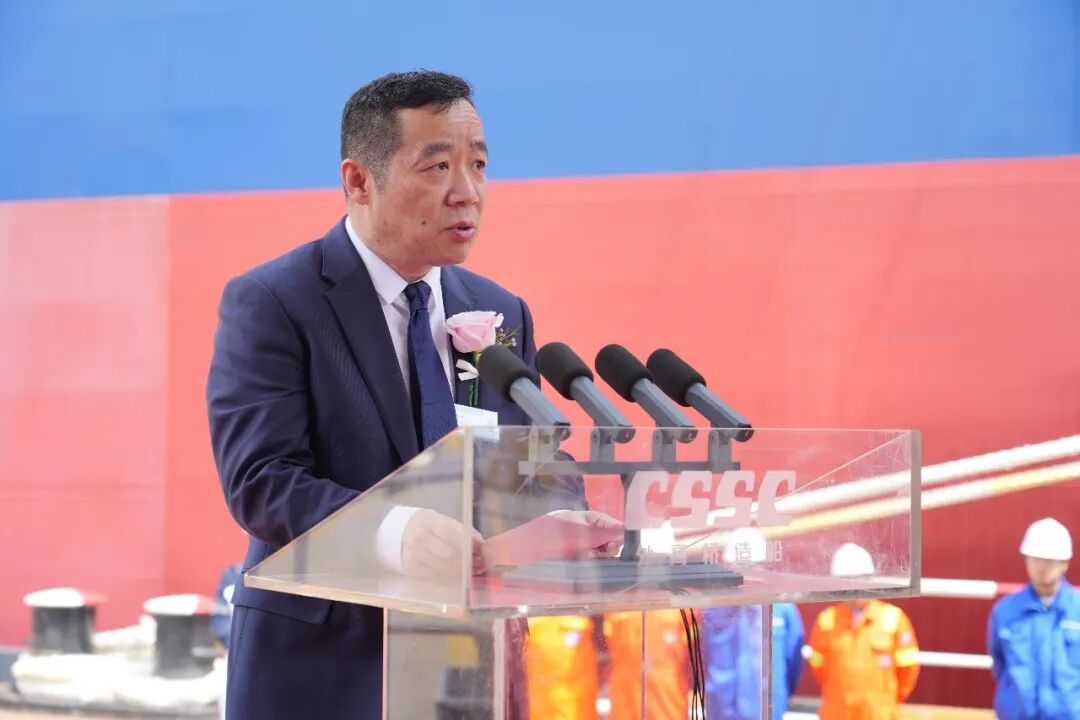 外高桥造船董事长陈刚感谢各方的协同合作,本次交付的“TS KELANG”轮全面满足国际环保与能效标准,具备优异的燃油经济性和装载灵活性,充分展现了公司精益建造与高效履约的能力,以此次交付为新起点,深化与德翔海运的合作共赢,共同推动全球航运高质量发展与两岸经贸融合。