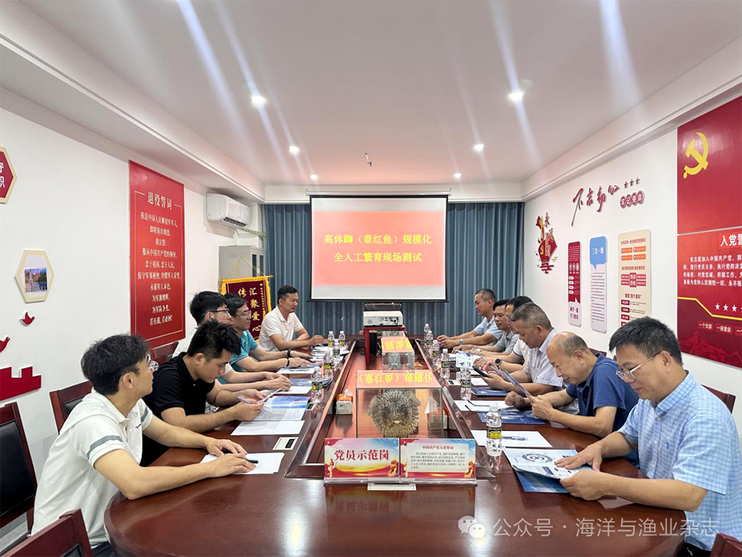 专家组现场考察了苗种培育基地与亲本培育设施,查阅了亲本选育、人工催产、苗种培育全流程生产记录,听取了项目组关于高体鰤规模化全人工繁育技术攻关的工作汇报。验收组专家一致认为,该成果突破了高体鰤全人工繁育的关键技术瓶颈,为高体鰤苗种规模化生产和养殖产业化发展提供了坚实的技术支撑,推广前景广阔。