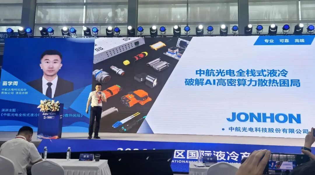 展会期间,中航光电技术专家受邀出席大会论坛,发表了《中航光电全栈式液冷破解AI高密算力散热困局》主题演讲,为行业破解算力升级带来的散热难题提供了成熟可行的技术方案与实践范本。