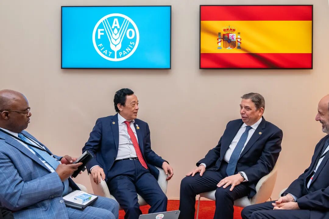 在会见西班牙农业、渔业与食品大臣普拉纳斯时,双方高度评价西班牙与粮农组织之间不断深化的合作关系,重申将共同致力于推进“同一个健康”理念并强调把理念化为具体行动的重要性。普拉纳斯大臣表示西班牙愿积极参与粮农组织“跨境动物疫病防控全球伙伴关系计划”。