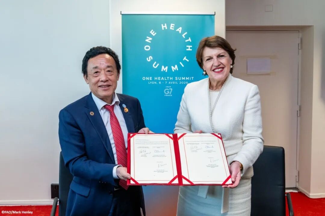 2026年4月6-8日,法国里昂 —— 应法国总统马克龙邀请,联合国粮食及农业组织(粮农组织)总干事屈冬玉率团于4月6日抵达里昂,出席“同一个健康峰会”并发表讲话,呼吁各方系统施策、综合治理,统筹保障人类、动物、植物、农业生态系统健康安全。