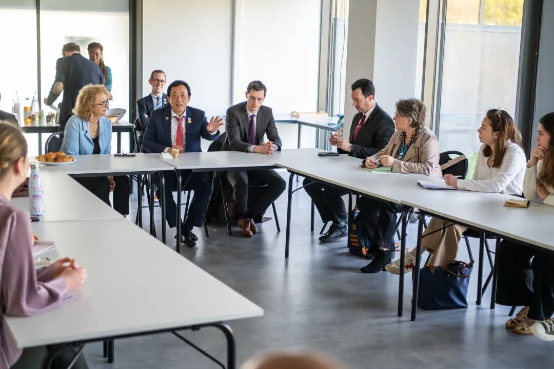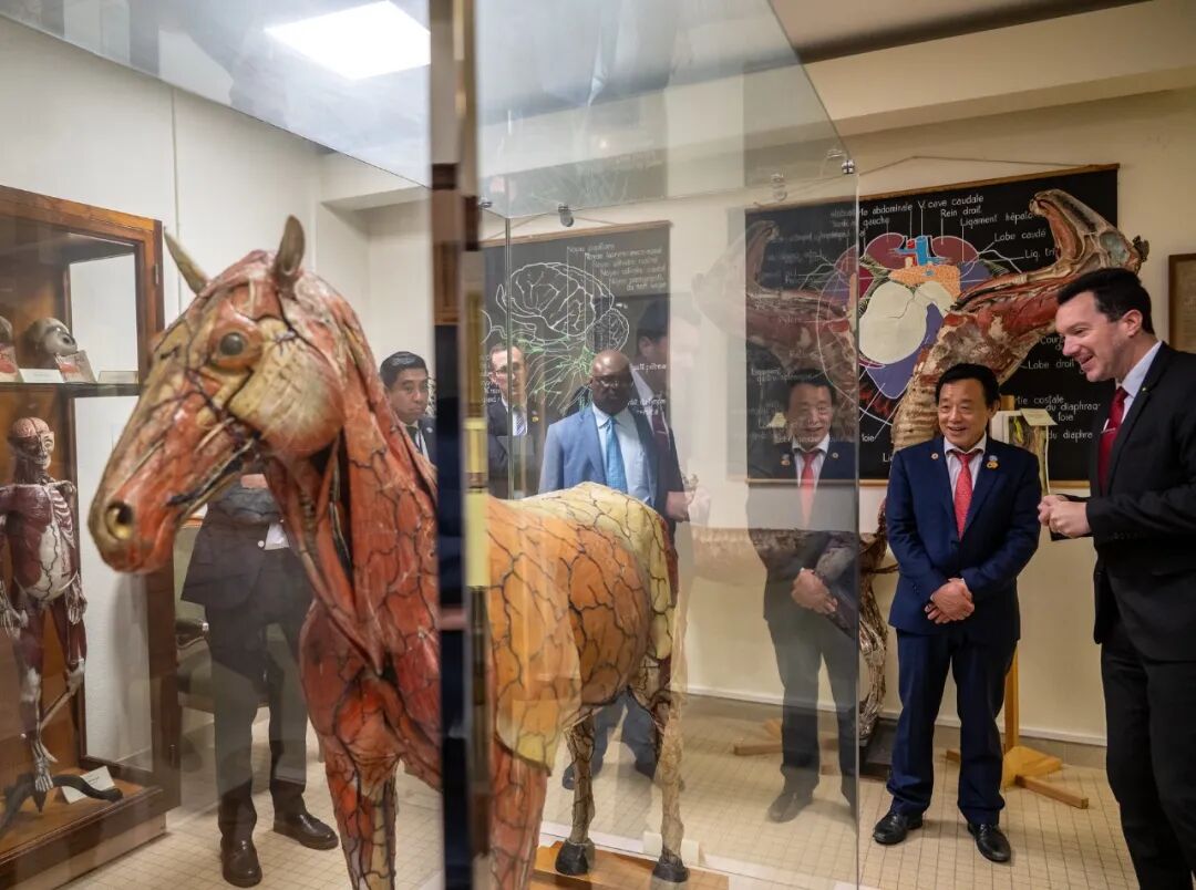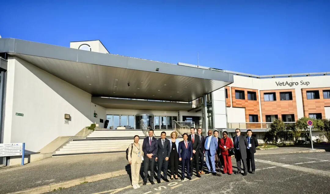 在里昂期间,屈总干事一行来到法国国立食品、兽医、农学与环境高等教育研究院(VetAgro Sup),与兽医、农学及兽医公共卫生等专业的师生座谈交流。他鼓励青年教师和莘莘学子知行合一、学以致用,积极投身跨学科合作,以创新思维为“同一个健康”理念落地注入新动能。